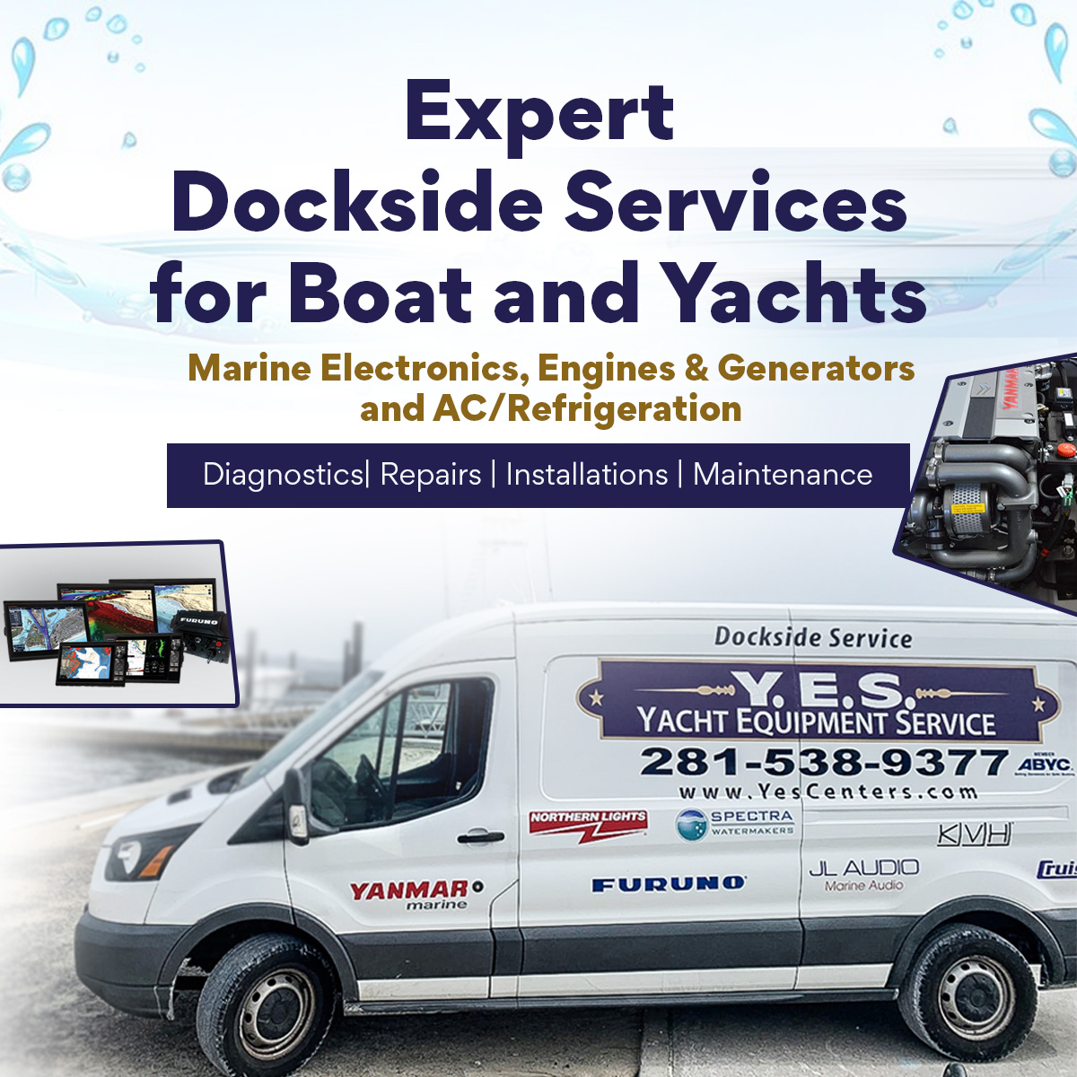 Yacht Equipment Service Centers (Y.E.S.) is a marine service company based in Kemah, Texas, specializing in providing dockside services to yachts and boats. Established in 2006, Y.E.S. employs factory-trained and certified technicians to deliver high-quality workmanship and customer service. Services Offered: Services: electrical installations, repowering, generator services, routine maintenance, and repairs.